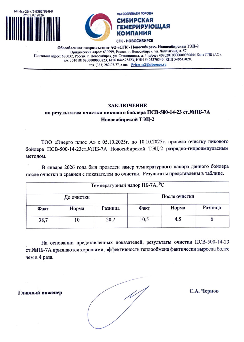 Производительность выходит на паспортные характеристики. Подтверждённый рост теплообмена в 4 раза